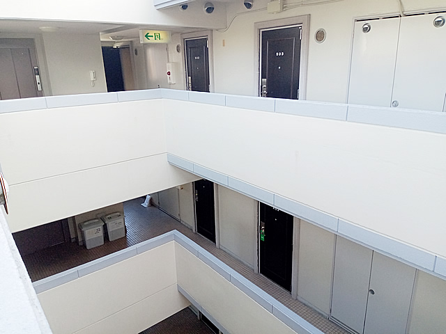 建物の構造上、各階廊下部分が吹き抜けとなっておりますので、蜜閉されず解放感があり空気も綺麗です。安心安全なマンションです。